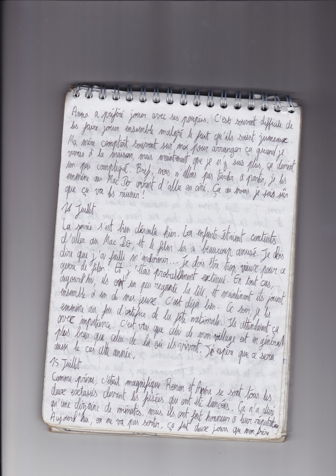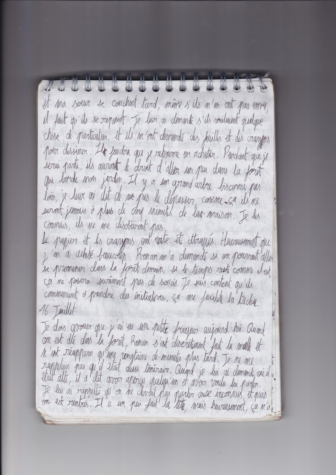 Pour vous montrer maintenant ce qui s’est passé, je vous mets ici les copies du carnet, elles parlent bien mieux que moi. Je ne pense pas que ce sera bien vu, car des efforts semblent être mis en œuvre pour étouffer l’affaire, mais au vu de la gravité de ce qui s’est passé, je pense que c’est nécessaire de montrer tout ça au plus de monde possible. La page arrachée a été remise à sa place dans la liste qui suit :