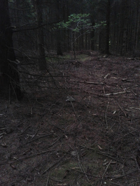Voilà l’entrée de la forêt. Comme dans n’importe quelle forêt, les arbres apportent beaucoup d’ombre, mais je ne peux expliquer pourquoi, ça m’a mis un peu mal à l’aise cette fois. J’ai suivi le genre de chemin marqué par les arbres qu’on peut discerner sur la deuxième photo. Voir ce genre de choses dans une forêt donne toujours un sentiment étrange, comme s’il fallait absolument le suivre. J’ai espéré que Kélian avait eu la même idée. J’ai continué mon chemin pendant un petit moment, peut être une demi-heure, en regardant partout autour de moi, à la recherche de… N’importe quoi, à vrai dire. Et je suis finalement tombé sur ceci :