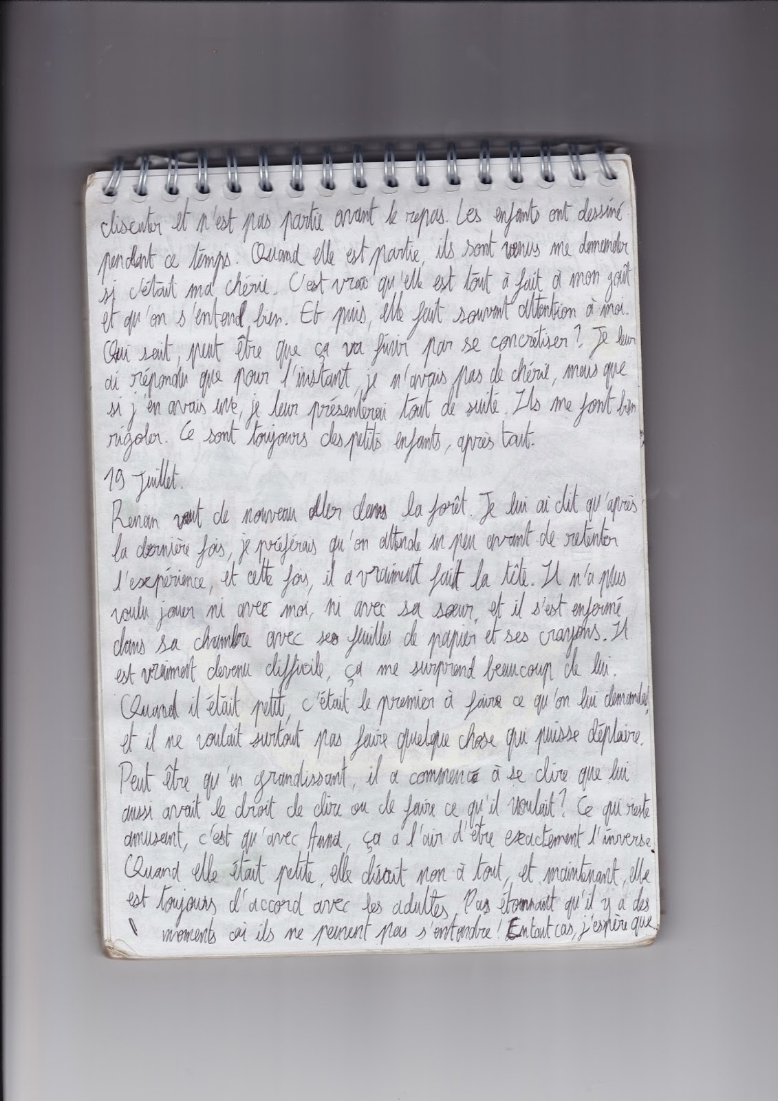 Pour vous montrer maintenant ce qui s’est passé, je vous mets ici les copies du carnet, elles parlent bien mieux que moi. Je ne pense pas que ce sera bien vu, car des efforts semblent être mis en œuvre pour étouffer l’affaire, mais au vu de la gravité de ce qui s’est passé, je pense que c’est nécessaire de montrer tout ça au plus de monde possible. La page arrachée a été remise à sa place dans la liste qui suit :